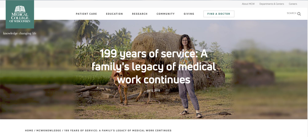 Allison Taylor, 4th year MCW medical student, is pictured during her CMC rotation in Vellore, India, in January, 2018. This July, the Medical College of Wisconsin’s website, honored the Scudder